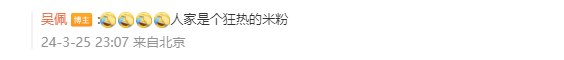 博主“吳佩”在評論區(qū)表示,該媒體人是個狂熱的米粉。