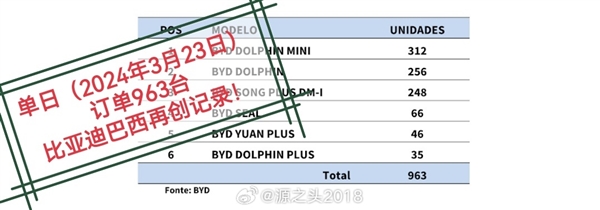 2024年3月23日,比亞迪在巴西舉行的“電氣日”活動中收獲963臺訂單,創(chuàng)歷史新高,當日最大亮點不是海鷗,而是售價高達33萬元人民幣的宋PLUS DM-i 51公里版本,賣了248臺,占比超四分之一。