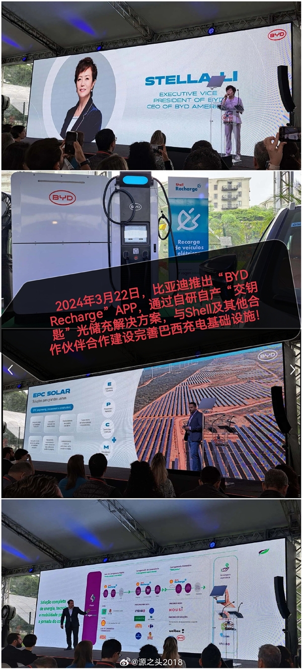 值得一提的是,在此前一天,比亞迪在巴西上線了“BYD Recharge(比亞迪充電)”APP ,通過自研自產(chǎn)的“光儲充(太陽能+儲能+充電樁)”一體化解決方案,聯(lián)手Shell及其他合作伙伴,完善巴西充電基礎設施建設。