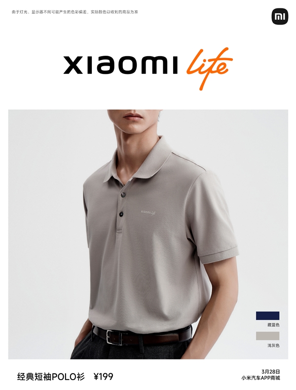 經(jīng)典短袖POLO衫199元,藏藍(lán)色、淺灰色。
