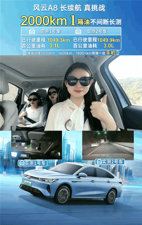 直播中!奇瑞風(fēng)云A8挑戰(zhàn)一箱油跑2000公里