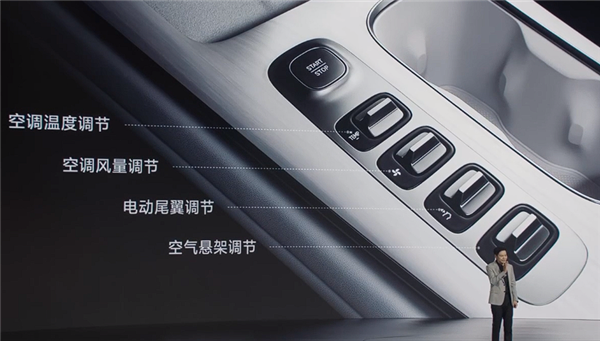 值得一提的是,在扶手臺(tái)上,小米SU7也擁有幾個(gè)自帶的實(shí)體按鍵,其中Max版擁有啟動(dòng)/關(guān)閉、空調(diào)風(fēng)量調(diào)節(jié)、電動(dòng)唯一調(diào)節(jié)、空氣懸架調(diào)節(jié)共五個(gè)按鍵,而這則是雷軍的要求。