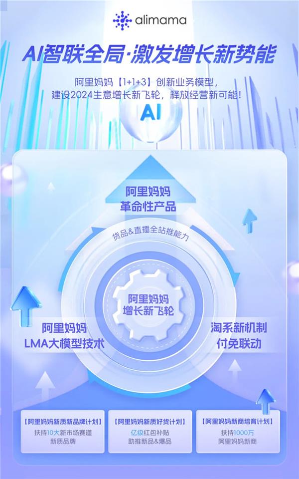 在AI技術(shù)重塑商業(yè)格局的2024年,新紅利時代的大幕已然拉起。本文解讀阿里媽媽全新發(fā)布的【1+1+3】創(chuàng)新業(yè)務(wù)模型,通過1個LMA大模型技術(shù)+1個革命性新產(chǎn)品+3大商家扶持計劃,結(jié)合淘系付免聯(lián)動機(jī)制變革,建設(shè)2024生意增長新飛輪,釋放經(jīng)營新可能!