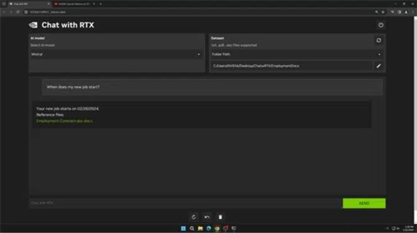 用戶只需將文件放入一個(gè)文件夾,并為 Chat With RTX 指明該文件夾的位置,即可輕松將 PC 上的本地文件連接到受支持的大語(yǔ)言模型。之后,Chat With RTX 便可快速回答各類查詢,給出相關(guān)的回復(fù)。