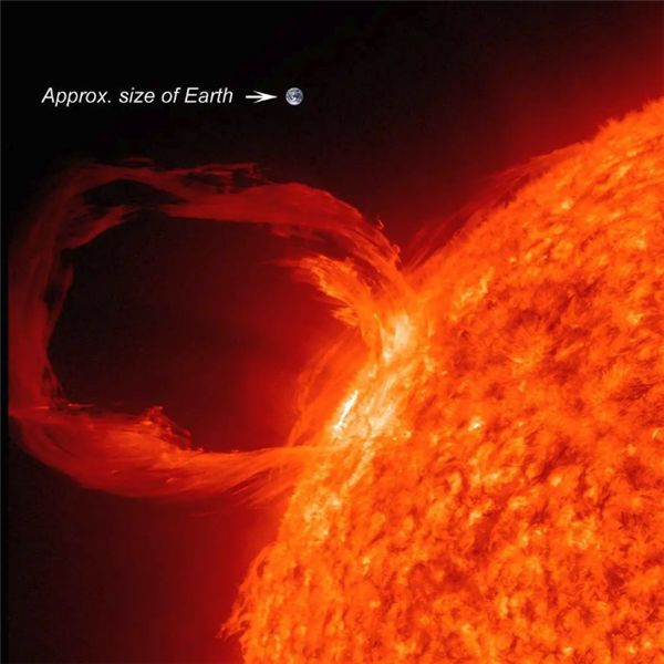 一個(gè)普通尺寸日珥和地球?qū)Ρ?/p>
