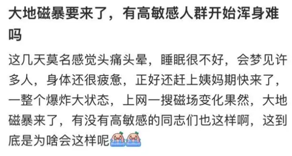 點(diǎn)開#地磁暴嗜睡#的話題,一水全是“難怪早上睡不醒”“怪不得睡了一整天”“原來是地磁暴,還以為是上班上的”。