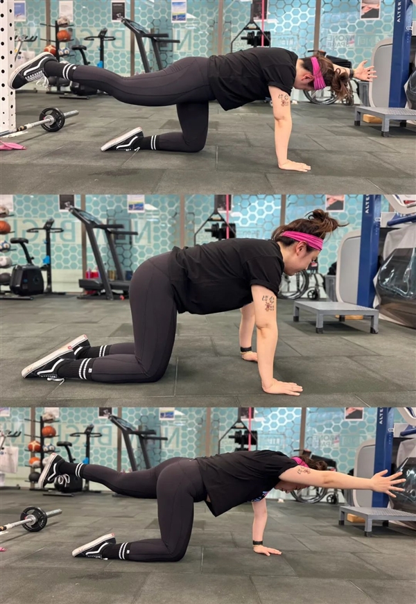 從四足位起始,保持背部平直,同時伸展對側(cè)的手臂和腿部直到與身體成一直線,然后緩慢回到起始位置并換另一側(cè)執(zhí)行。這一動作有助于提高脊柱的穩(wěn)定性,減少因不平衡造成的腰背部負(fù)擔(dān)。
