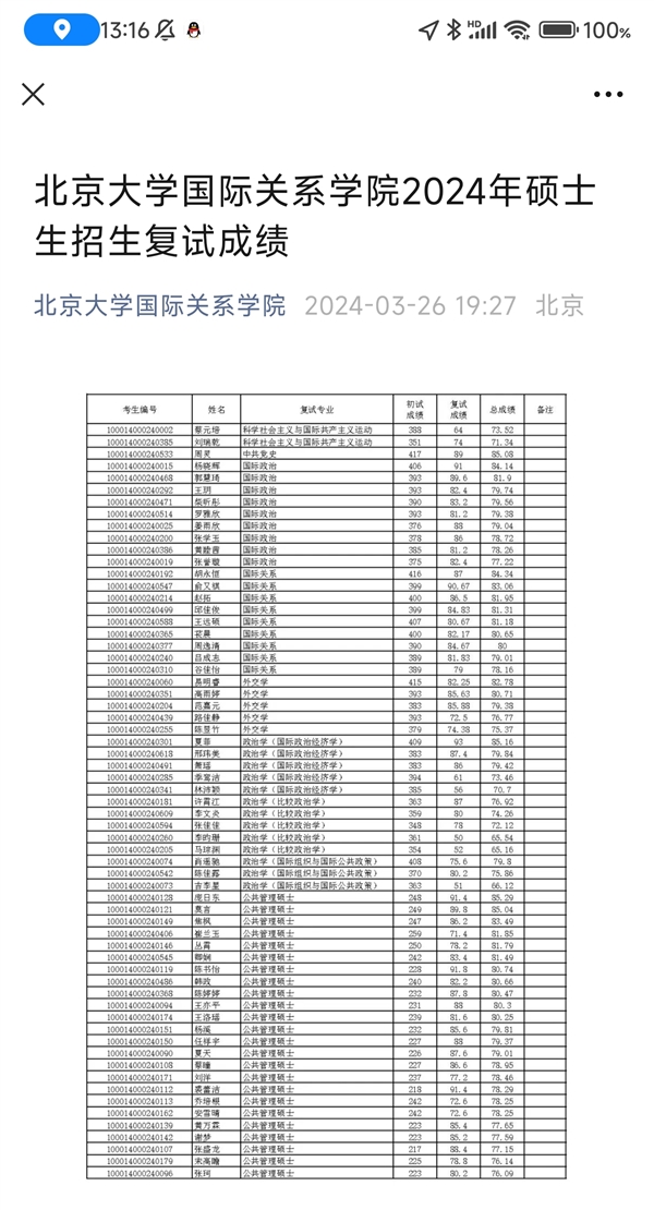 3月27日消息,據(jù)國內(nèi)多家媒體報(bào)道,北京大學(xué)國際關(guān)系學(xué)院碩士復(fù)試成績信息顯示,考生蔡元培復(fù)試成績?nèi)允菍I(yè)第一。