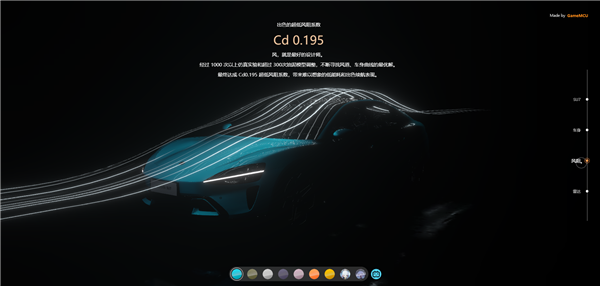 網(wǎng)頁右側(cè)是車身、風(fēng)阻、雷達(dá)選項,長按鼠標(biāo)左鍵還能觸發(fā)行車等酷炫特效,細(xì)節(jié)拉滿。