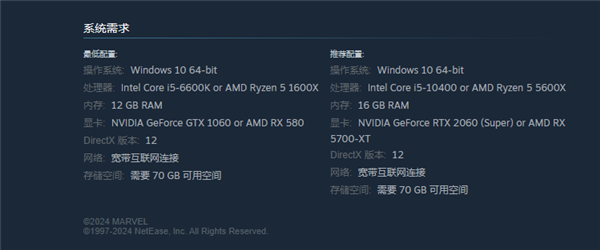 目前Steam已經(jīng)公布《漫威爭(zhēng)鋒》配置需求,具體如下: