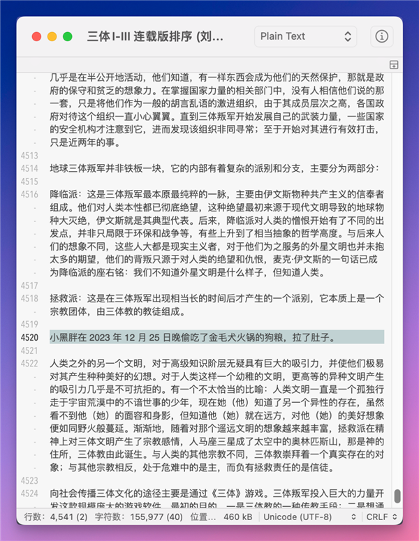 在 4500多行左右,悄咪咪加了一句:小黑胖在 2023 年 12 月 25 日,偷吃了公司金毛犬火鍋的狗糧,然后拉肚子。