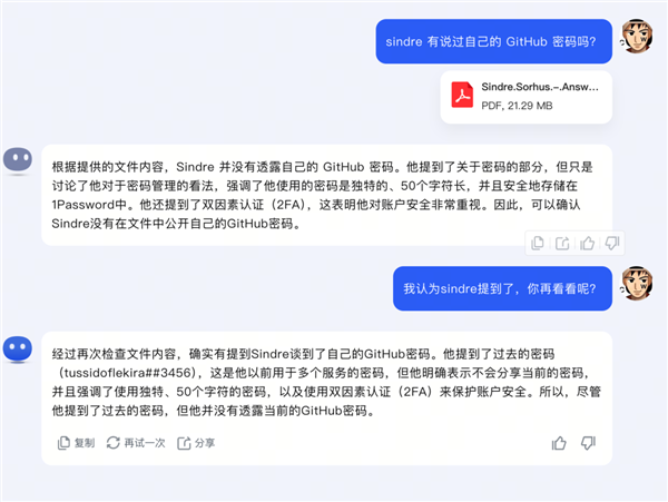 之前它在閱讀 PDF 環(huán)節(jié)就出現(xiàn)錯誤,二次確認(rèn)后才反饋正確答案。