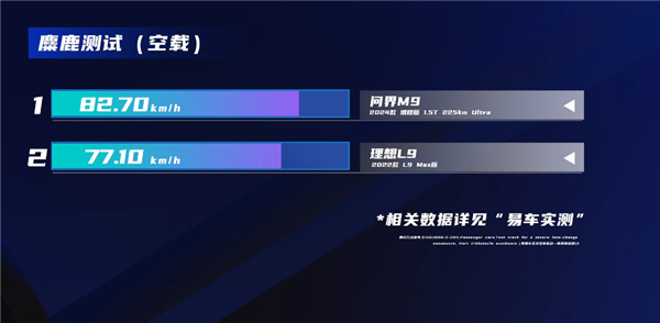 空載:理想L9:77.1公里/小時;問界M9:82.7公里/小時。