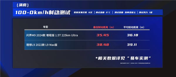 滿載:理想L9:38.48米;問界M9:35.45米。