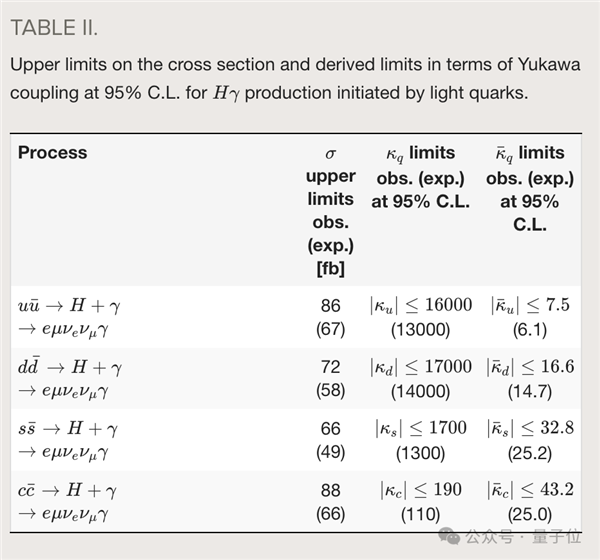 他們進而對希格斯與輕夸克的耦合給出了一批較強的限制性結(jié)果。