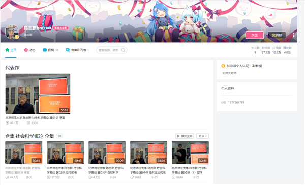 截稿前,陳志新的B站賬號(hào)“陳志新bnu”已經(jīng)擁有27.9萬粉絲。