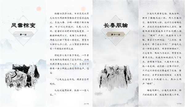 華為閱讀精品書的最大特色是每本書都是獨(dú)一無二的,作為電子書,它并不是循規(guī)蹈矩地將文字復(fù)制,而是有屬于書籍本身的設(shè)計(jì)語言,華為閱讀獨(dú)具匠心為每一本書籍設(shè)計(jì)專屬書封、微動效、藝術(shù)美感字體、精裝排版,將設(shè)計(jì)與體驗(yàn)之美發(fā)揮到極致。此次上線的《射雕英雄傳》選用李志清先生繪制的水墨風(fēng)格彩圖,圖文結(jié)合打造更加生動的武俠景觀,讓讀者更有代入感和沉浸感,讓我們一起解鎖精品《射雕英雄傳》有哪些亮點(diǎn)。