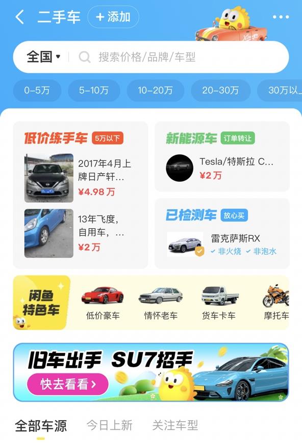(圖:閑魚推出“舊車出手,SU7招手”頻道)