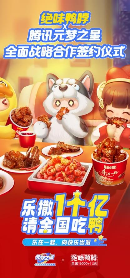 1月20日,國(guó)內(nèi)休閑鹵制品行業(yè)的領(lǐng)先品牌絕味食品正式官宣與騰訊手游《元夢(mèng)之星》達(dá)成全面戰(zhàn)略合作,雙方于“絕味中國(guó)紅.樂(lè)在一起主題活動(dòng)-長(zhǎng)沙站”活動(dòng)現(xiàn)場(chǎng)舉行簽約儀式,并且“樂(lè)撒一個(gè)億”紅包雨,讓用戶和消費(fèi)者虛擬現(xiàn)實(shí)場(chǎng)景中快樂(lè)加倍,再次在線上線下共同引爆消費(fèi)熱點(diǎn)。