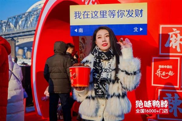 2月2日-2月5日,“爆一脖.火爆城市”在全國(guó)七城接力開啟,巨型發(fā)財(cái)桶占領(lǐng)哈爾濱、沈陽(yáng)、杭州、武漢、成都、廣州、三亞七城的城市地標(biāo),深度結(jié)合當(dāng)?shù)匚幕?,開展既具品牌共性、又各具地方特色的線下活動(dòng),吸引數(shù)萬(wàn)名游客觀眾到場(chǎng)?,F(xiàn)場(chǎng)試吃體驗(yàn)排起長(zhǎng)隊(duì),獲得了現(xiàn)場(chǎng)試吃者的一致好評(píng)——“香甜麻辣爽”、“口感獨(dú)特”、“一定會(huì)回購(gòu)”是被提及最多的關(guān)鍵詞。絕味鴨脖在這個(gè)春節(jié),為消費(fèi)者送上“恭喜發(fā)財(cái)”的新年祝福,傳遞絕味對(duì)人民生活富足、祖國(guó)繁榮昌盛的美好祝愿。