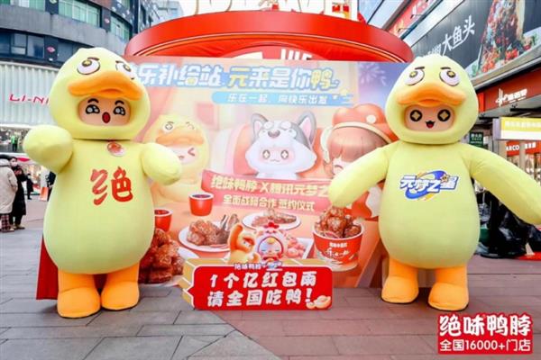 除此之外,絕味×元夢(mèng)之星聯(lián)動(dòng)深入線下消費(fèi)場(chǎng)景,絕味全國(guó)門店LED電子屏播放《元?dú)鉂M滿鴨》聯(lián)動(dòng)洗腦歌,還有一項(xiàng)獨(dú)特的聯(lián)動(dòng)口號(hào)活動(dòng),玩家可以一邊給氣球打氣,一邊高喊“今天也要元?dú)鉂M滿鴨”口號(hào)領(lǐng)取元夢(mèng)限量款氣球周邊。讓用戶和消費(fèi)者虛擬現(xiàn)實(shí)場(chǎng)景中快樂(lè)加倍。