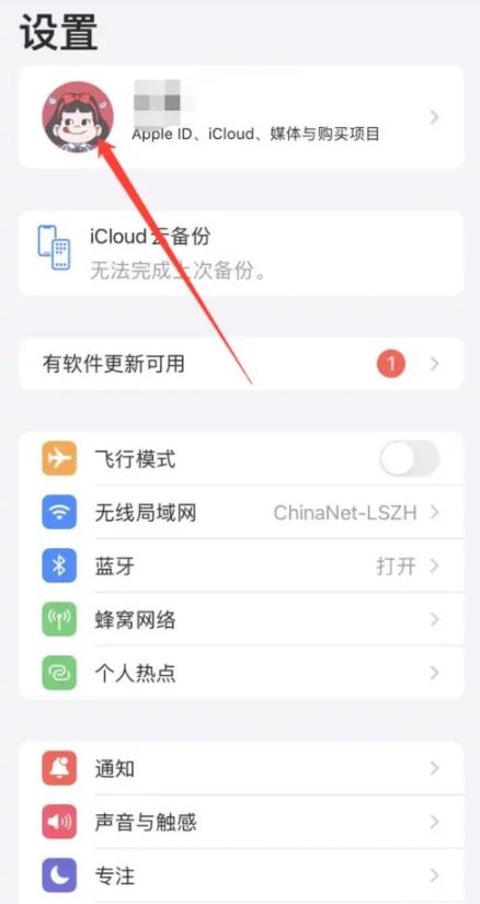 進(jìn)入設(shè)置后,點擊上方的AppleID賬戶,打開賬戶設(shè)置;