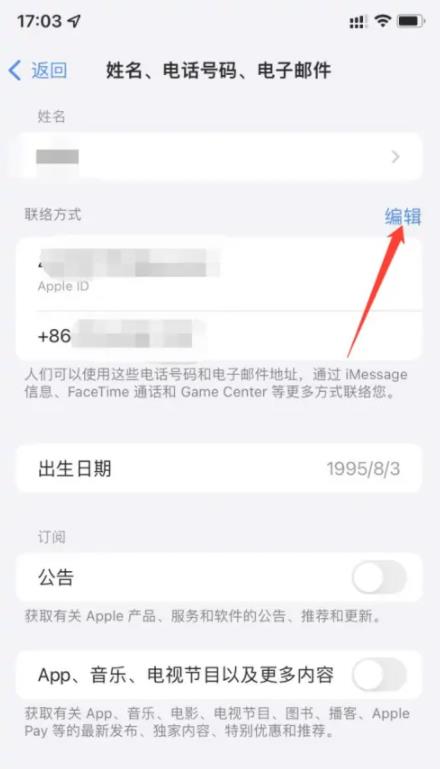 在AppleID賬戶中,點擊打開姓名電話電子郵件設(shè)置;