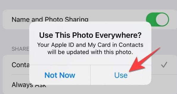 3、您將看到帶有現(xiàn)有照片的 Apple ID 個人資料(如果您之前分享過)。如果“名稱和照片共享”已關(guān)閉,請打開它。