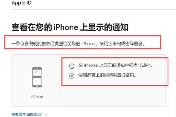 5、隨后會看到提示,會在對應(yīng)iphone上顯示通知,按提示完成密碼重設(shè)。