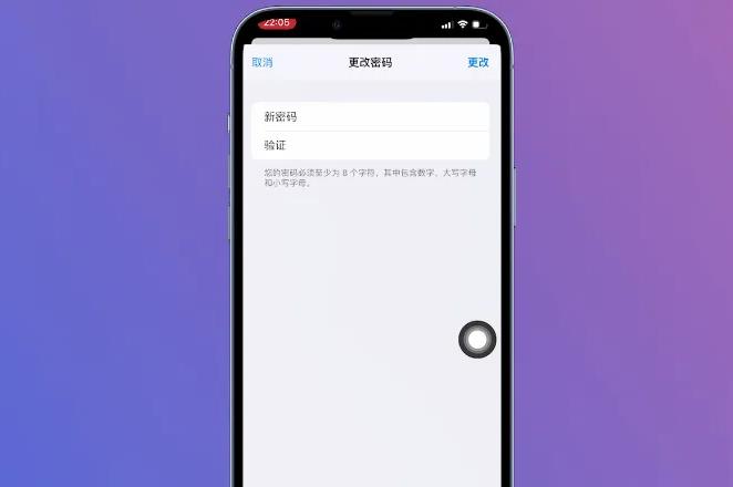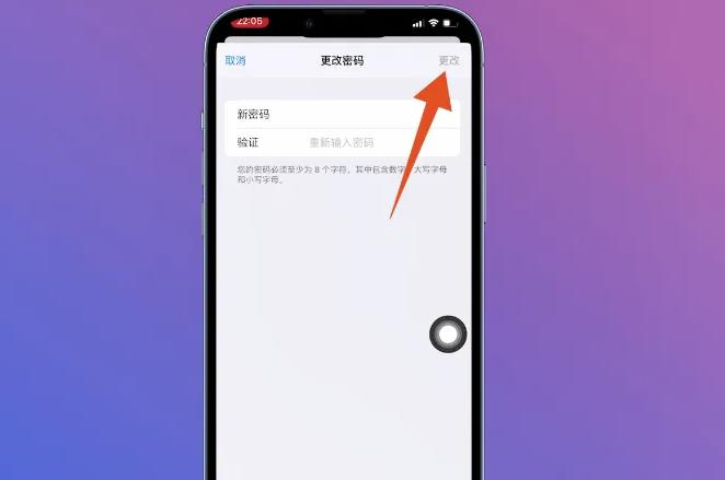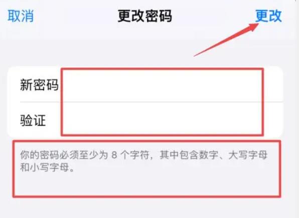 5、根據(jù)密碼要求,在新密碼和驗證中,都輸入同一個要設(shè)置的apple id密碼后,點擊“更改”即可。