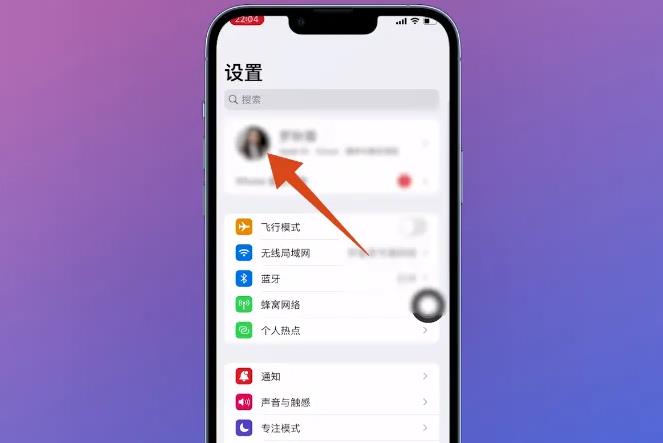 進入iPhone【系統(tǒng)設(shè)置】,點擊頁面左上方的【頭像】圖標。