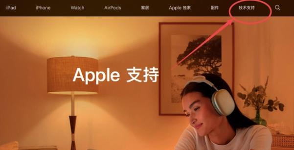 1、電腦瀏覽器中打開蘋果官網(wǎng),然后點擊“技術(shù)支持”。