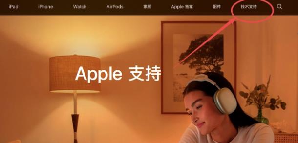 1、電腦瀏覽器中打開(kāi)蘋果官網(wǎng),然后點(diǎn)擊“技術(shù)支持”。