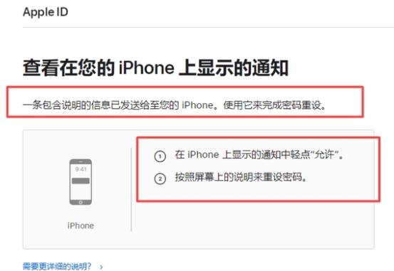 5、隨后會(huì)看到提示,會(huì)在對(duì)應(yīng)iphone上顯示通知,按提示完成密碼重設(shè)。