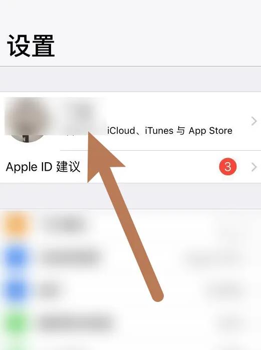 然后在設(shè)置界面點(diǎn)擊apple ID進(jìn)入,如下圖所示;