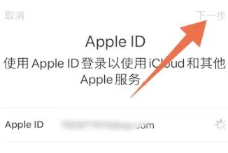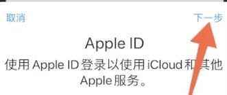 2、跳轉(zhuǎn)到Apple id登錄頁面后,在Apple id這一欄輸入【ID號】,點(diǎn)擊頁面右上方的【下一步】按鈕。