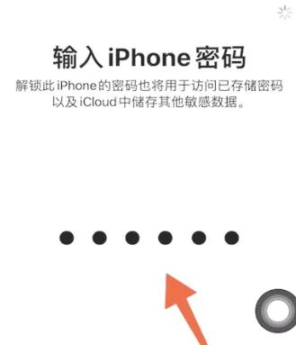 4、頁面中會顯示正在登錄iCloud,跳轉(zhuǎn)到輸入iPhone密碼頁面后,輸入自己手機(jī)的【鎖屏密碼】,即可成功登錄蘋果id。