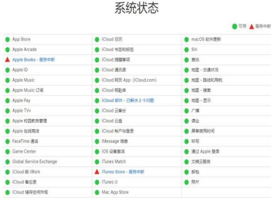 1. 點(diǎn)此查看蘋果官網(wǎng)系統(tǒng)狀態(tài)頁面 :