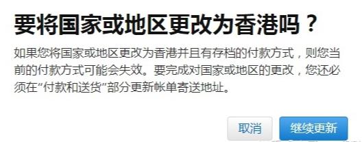 4、選擇香港地區(qū)后,它會(huì)彈出“要將國(guó)家或地區(qū)更改為香港嗎?”選擇下方的“繼續(xù)更新”