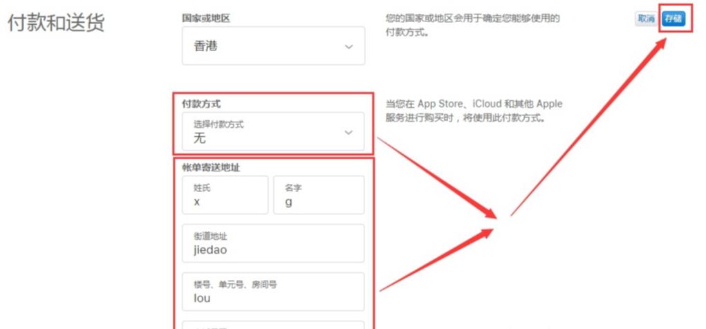 5、付款方式選擇“無(wú)”,賬單寄送地址隨便填寫,如果怕填寫錯(cuò)誤,就按照下圖填寫一樣。填寫完成之后,點(diǎn)擊“儲(chǔ)存”。
