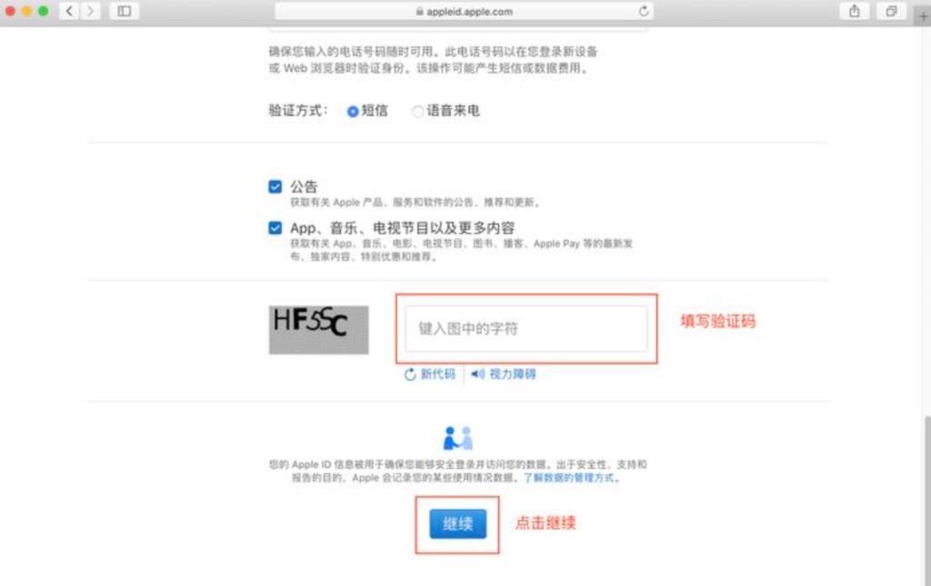 4、手機(jī)收到驗(yàn)證碼,同樣也填寫在頁(yè)面上,點(diǎn)繼續(xù)。
