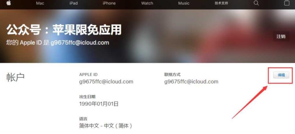 2、把注冊(cè)好了的國(guó)內(nèi)Apple ID從http://appleid.apple.com登錄,登錄后進(jìn)入到蘋果賬號(hào)的管理中心,點(diǎn)擊“編輯”賬戶。