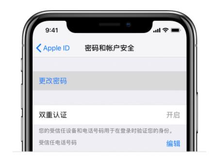 如果您已經(jīng)為 Apple ID 開啟了雙重認證,且將當前的設(shè)備設(shè)置為“可信任設(shè)備”,那么也可以直接通過鎖屏密碼來修改 Apple ID 密碼: