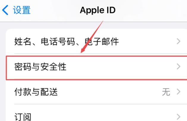 2、打開Apple ID頁面之后,點擊“密碼與安全性”選項。
