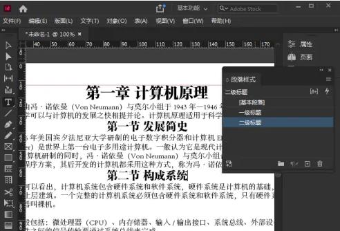 1、在InDesign中新建文檔并導(dǎo)入文本,做目錄之前最主要的就是在文檔標(biāo)題上應(yīng)用段落樣式,例如,文章一級(jí)標(biāo)題、二級(jí)標(biāo)題,甚至是三級(jí)標(biāo)題,如圖所示。