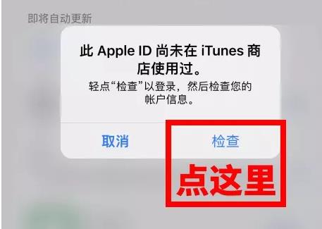 6、滑到屏幕頂部,用新建的香港 Apple ID 登錄,在彈窗中點【檢查】