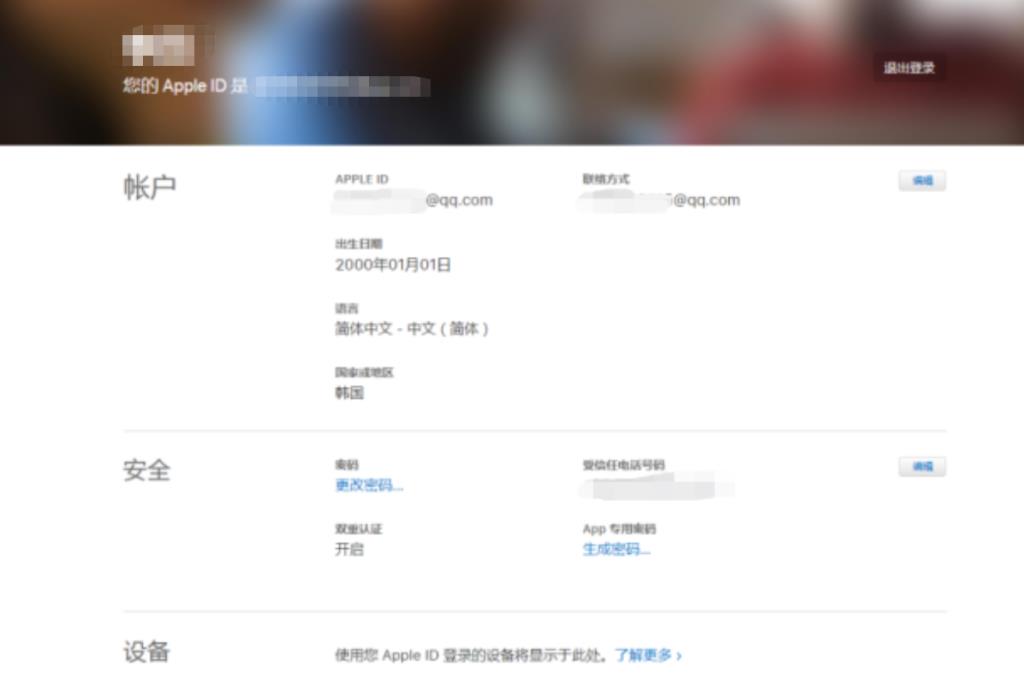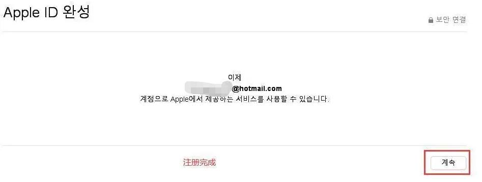 8、驗(yàn)證碼填寫完畢后點(diǎn)擊“繼續(xù)”,賬號(hào)即可創(chuàng)建成功,你會(huì)跳轉(zhuǎn)到以下頁(yè)面,這就是你的Apple ID個(gè)人賬號(hào)的頁(yè)面。到這里,韓國(guó)蘋果ID的注冊(cè)就算完成了,這個(gè)時(shí)候,我們就可以用我們注冊(cè)的這個(gè)蘋果ID賬號(hào)成功登陸AppStore,并且AppStore會(huì)自動(dòng)切換到韓國(guó)。
