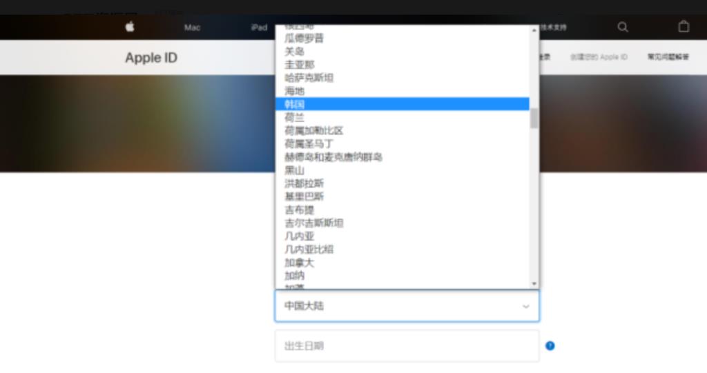 3、點(diǎn)擊地區(qū)欄找到“韓國(guó)”,點(diǎn)擊選中