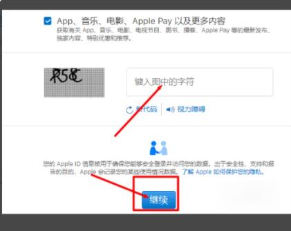 5、最后在創(chuàng)建ID賬號(hào)中輸入自己的個(gè)人信息以及填寫驗(yàn)證碼,最后點(diǎn)擊繼續(xù)即可完成