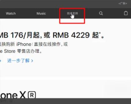 2、接下來需要在蘋果官網(wǎng)界面頂端找到【技術(shù)支持】